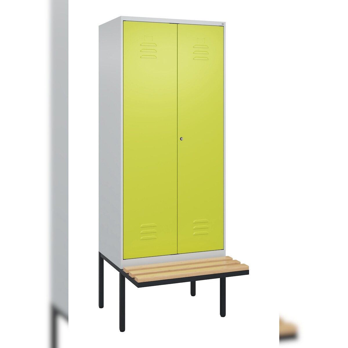 C+P Doppel-Spind Classic PLUS, schwebender Sitzbank aus Buche 2 Abteile, HxBxT 212x80x82cm, Zylinderschloss, Hellgrau/Clowngrün von PROREGAL