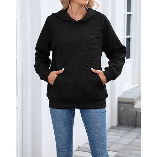 Per donna Felpa con texture Felpa con cappuccio Semplice Streetwear Casual Manica Lunga Con Cappuccio Top Regolari Streetwear Uscire Tasca Nero Rosa Vino Grigio Autunno