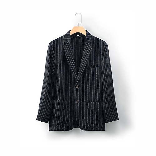Per uomo Giacca blazer Blazer di Lino Colletto ad incastro Moda Leggero Casual A righe Tinta unita Blazer Blazer in lino Nero Blu scuro Vestibilità su misura Monopetto Due Bottoni