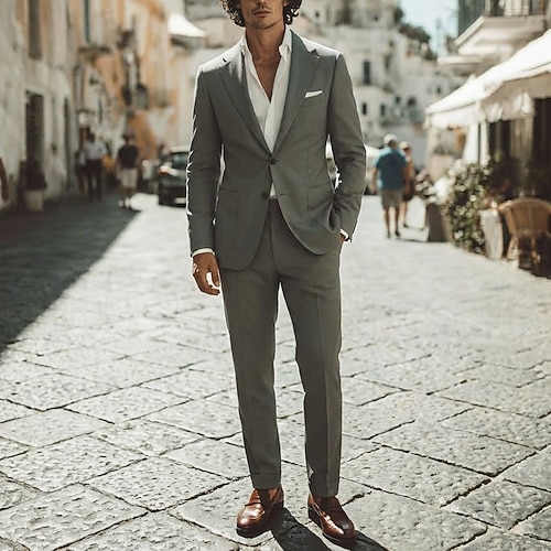 Uomo Completi in Lino Matrimonio in Spiaggia Matrimonio primaverile Nero Bianco Primavera Estate Tuta Bavero classico Quotidiano Festa Tinta unita Vestibilità su misura 2 pezzi Monopetto Due Bottoni