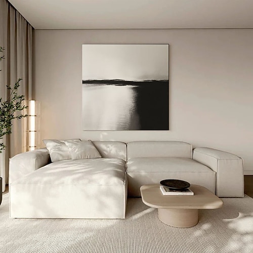 Quadro su tela dipinto a mano in bianco e nero con paesaggio lacustre, cielo nero, riflessi, decorazione murale moderna per soggiorno