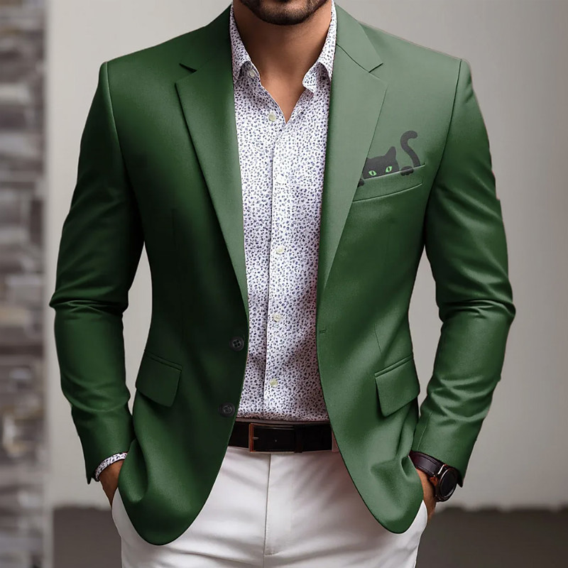 Men's Animal Cat Blazer Jacket Coat Comfortable Breathable Artistic Casual Daily Party Evening Wear Causal Pocket 3D Print Buttons All Seasons Notch Long Sleeve Blue Red Green