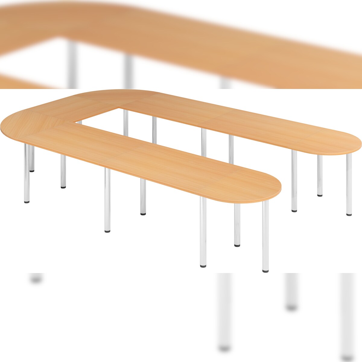 bümö Konferenztisch U-Form 380x240 cm großer Besprechungstisch in Buche, Besprechungstisch mit Chromfüßen, Meetingtisch für 11 Personen, Tisch für
