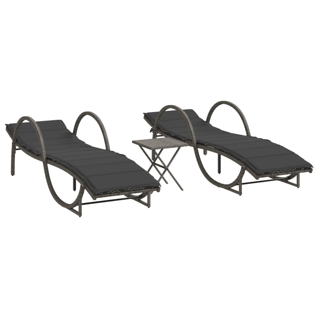 vidaXL Sonnenliegen 2 Stk. mit Tisch Grau Poly Rattan