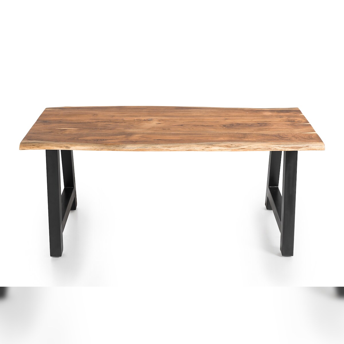 SalesFever Tisch Akazie 200x100 cm Massiv | Natur Baumkante 3,5 cm stark | mit A-Gestell Schwarz