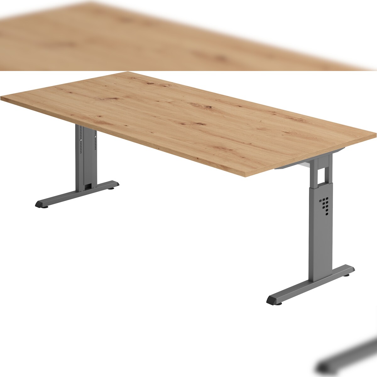 bümö höhenverstellbarer Schreibtisch O-Serie 200x100 cm in Asteiche, Gestell in Graphit - großer PC Tisch für's Büro manuell höhenverstellbar,