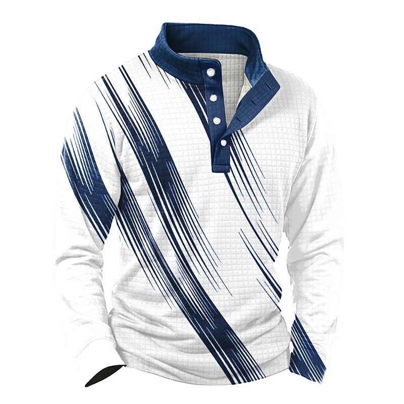 Men's Geometric Line Waffle Sweatshirt Daily Classic Casual Stand Collar Outdoor Home Work Gift Blue Green Gray Buttons Fall Winter Designer S M L XL XXL XXXL