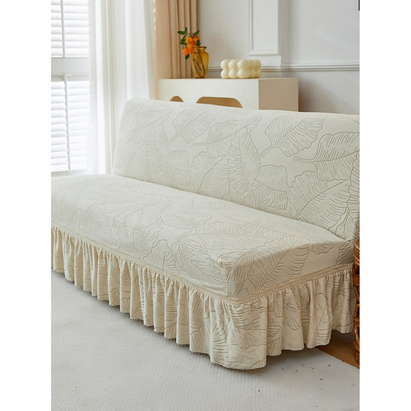 1 Pc High Elasticity Jacquard Velvet Skirt Style Sofa Bed Cover, Full Folding Armless Sofa Bed Protector, Integrated All-Season Sofa Cover for Living Room Home Use
