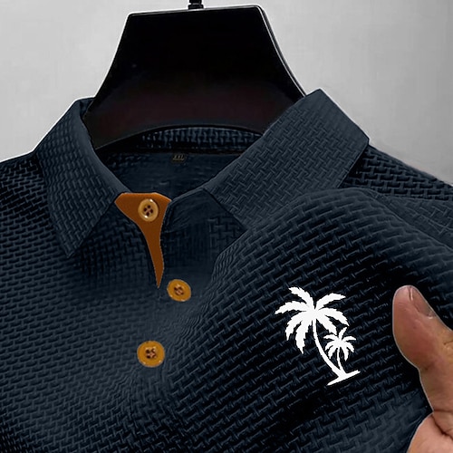 Per uomo Maglia da golf Polo da Golf Casuale Lavoro Bavero Manica Corta Essenziale Moderno Albero di Cocco Jacquard Bottoni Estate Primavera Vestibilità regolare Blu Nero Bianco Blu marino Grigio
