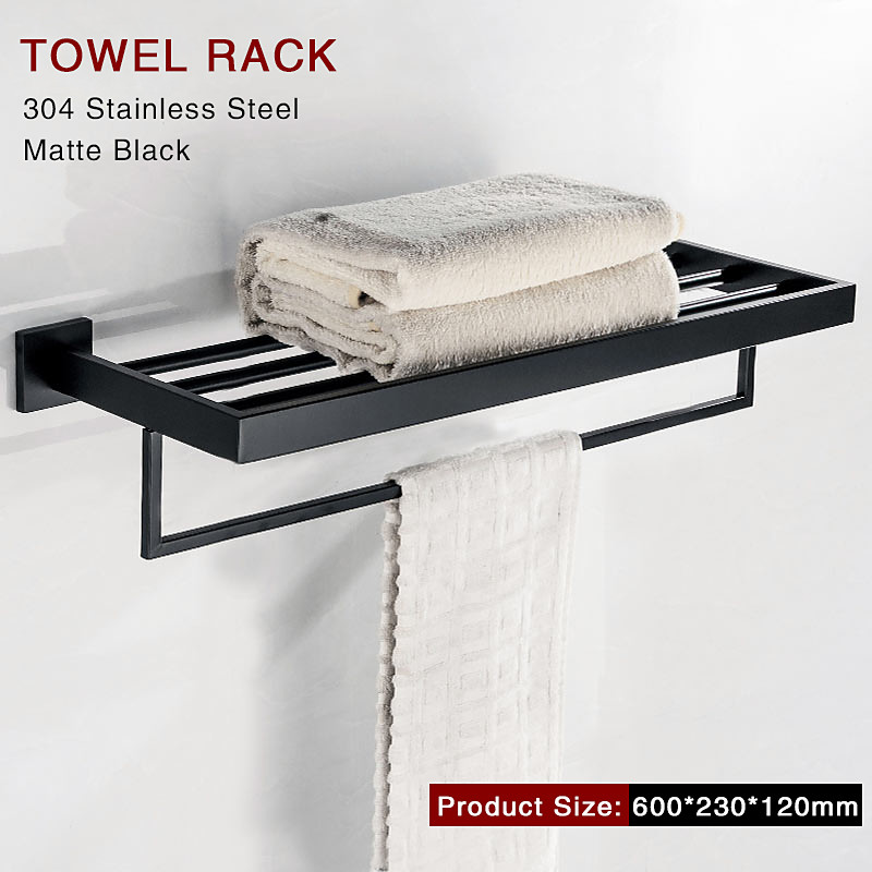 Bathroom Hardware Accessories, Stainless Steel Wall Mounted Brushed Nickel Towel Bar Hand Towel Holder, Toilet Paper Holder, Robe Towel Hook, Coat Hook Towel Bar (Black)