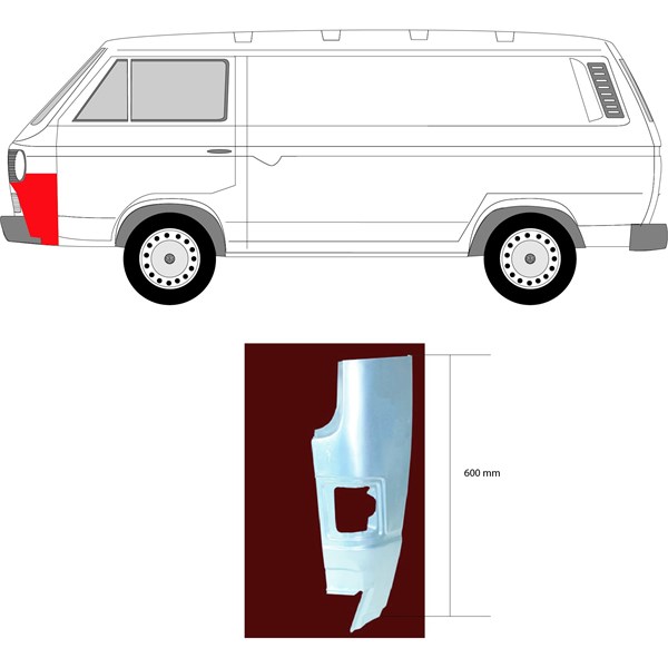 Keulapaneeli, Eteen, vasen Klokkerholm 9557213 - vw transporter t3 buss, transporter t3 flak/chassi, transporter t3 skåp - OE 251 805 053, 955721-1