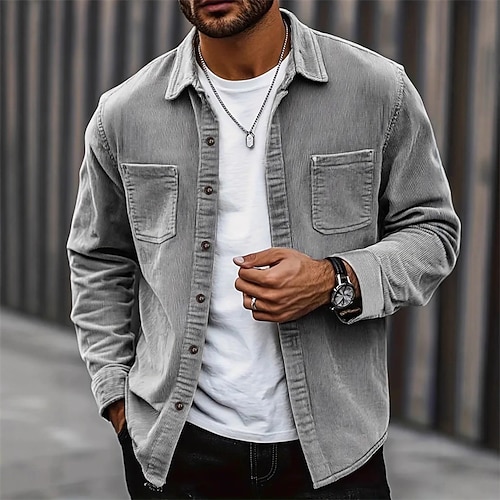 Per uomo Giacca Leggera Giacca Camicia Giacca Casual Casuale Quotidiano Tasca Bottoni Primavera Autunno Tinta unica Streetwear Quotidiano Collo ripiegato Regolare Blu Nero Verde militare Grigio Giacca