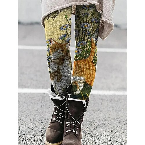 Per donna Leggings Vacanza Vintage Stile Etnico Lunghezza alla caviglia Vita Alta Grafico Animale Gatto Stampa 3D Asciugatura Rapida Traspirabilità Morbido Elasticizzato All'aperto Casa Casual Nero