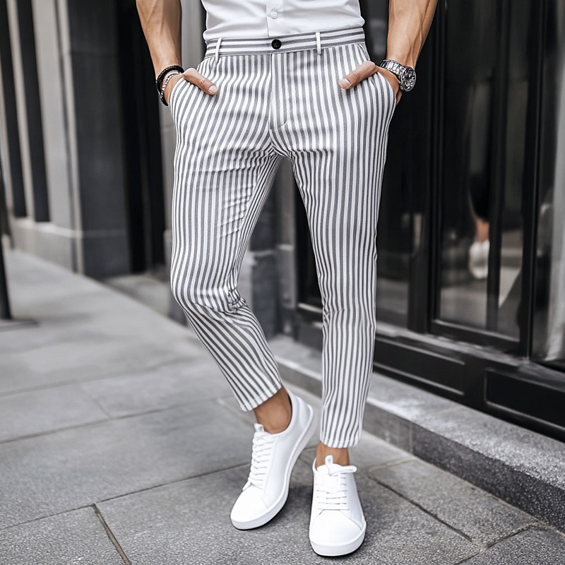 Men's Geometric Striped Dress Pants Trousers Mid Waist Business Casual Outdoor Vacation Streetwear with Pockets Slim Fit Flat-Front Summer Spring Fall 3D Print Yellow Beige Gray