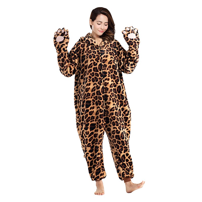 Carnival Costume 2026 Animal Leopard Carnival Kigurumi Pajamas Group Costume Onesie Costume Warm Comfy Hooded Fleece Adults' Men's Women's Unisex Halloween Carnival Party Performance Homewear Easy