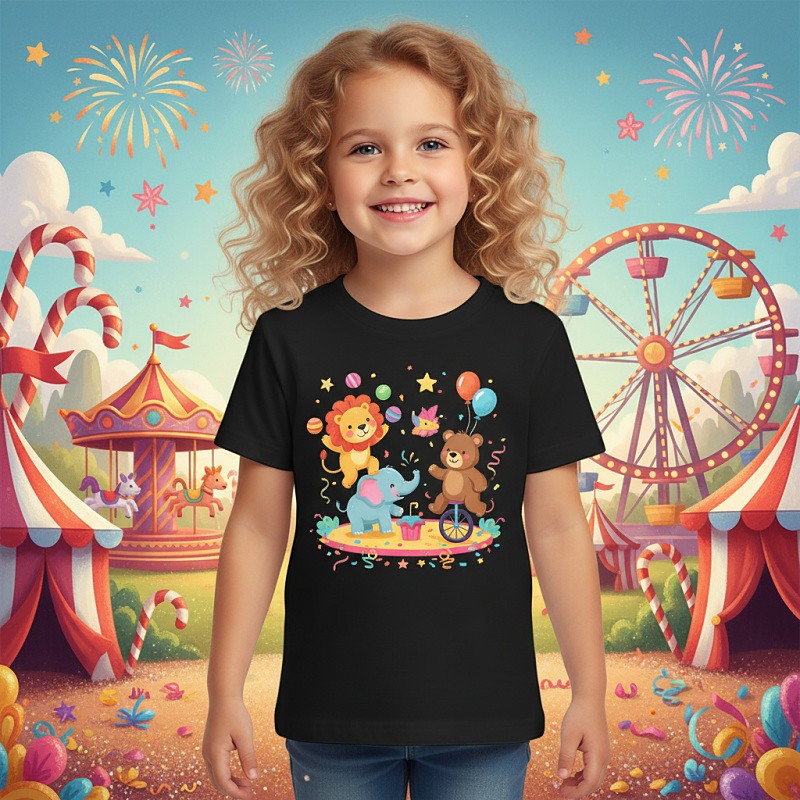100% Cotton Carnival Costume 2026 Kids Girls' Blue Black White Graphic Animal Cartoon T shirt Tee Crew Neck Short Sleeve Vacation Sports Outdoor Dailywear Fashion Streetwear Casual Printing All