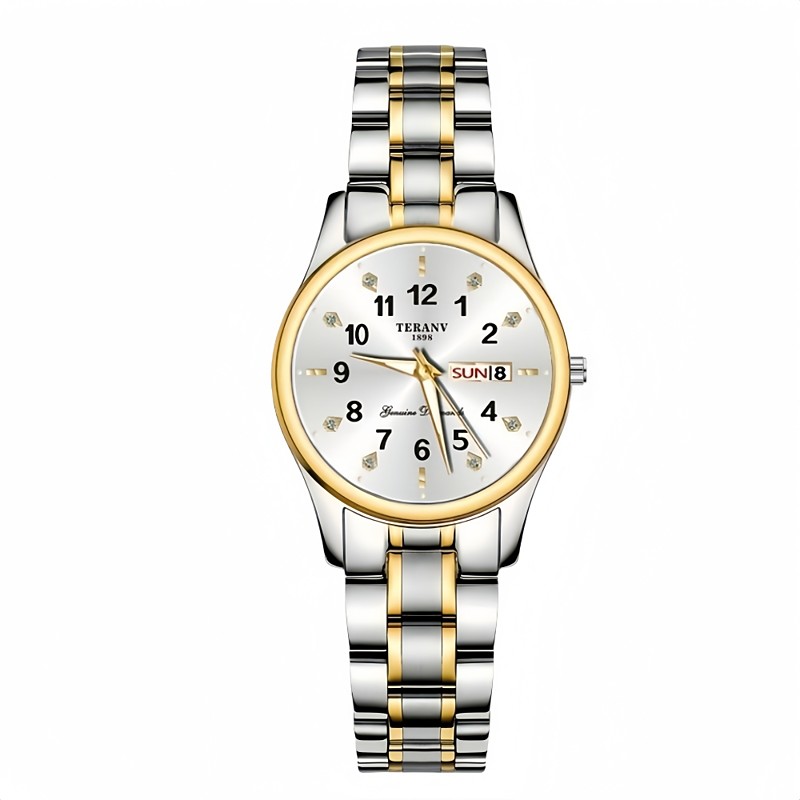 Ladies' Quartz Watch Is Fashionable Casual and Elegant with A Rhinestone Digital Scale and Dual Calendar Luminous Dial - The Best Gift Choice for Ladies