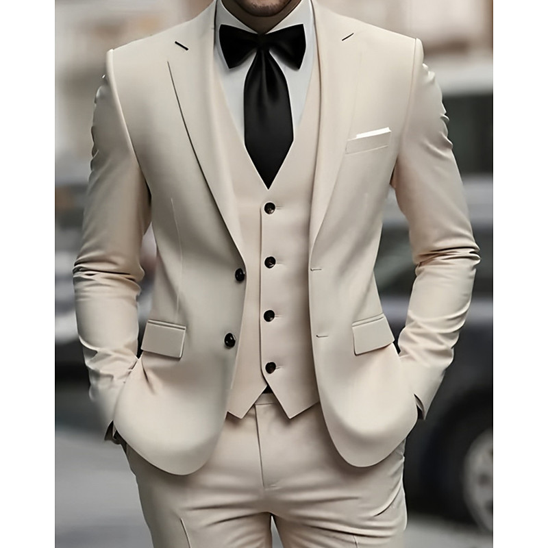 Men's Wedding Suits White Half Lined Lightweight Casual Solid Colored Standard Fit 2 Piece Double Breasted Six-buttons