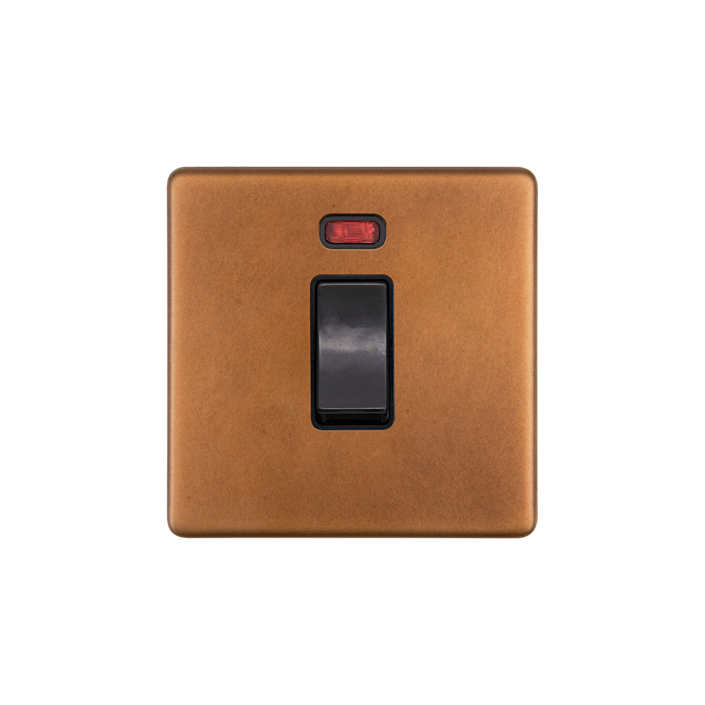 Soho Lighting Antique Copper 45A 1 Gang Double Pole Switch with Neon on Single Plate