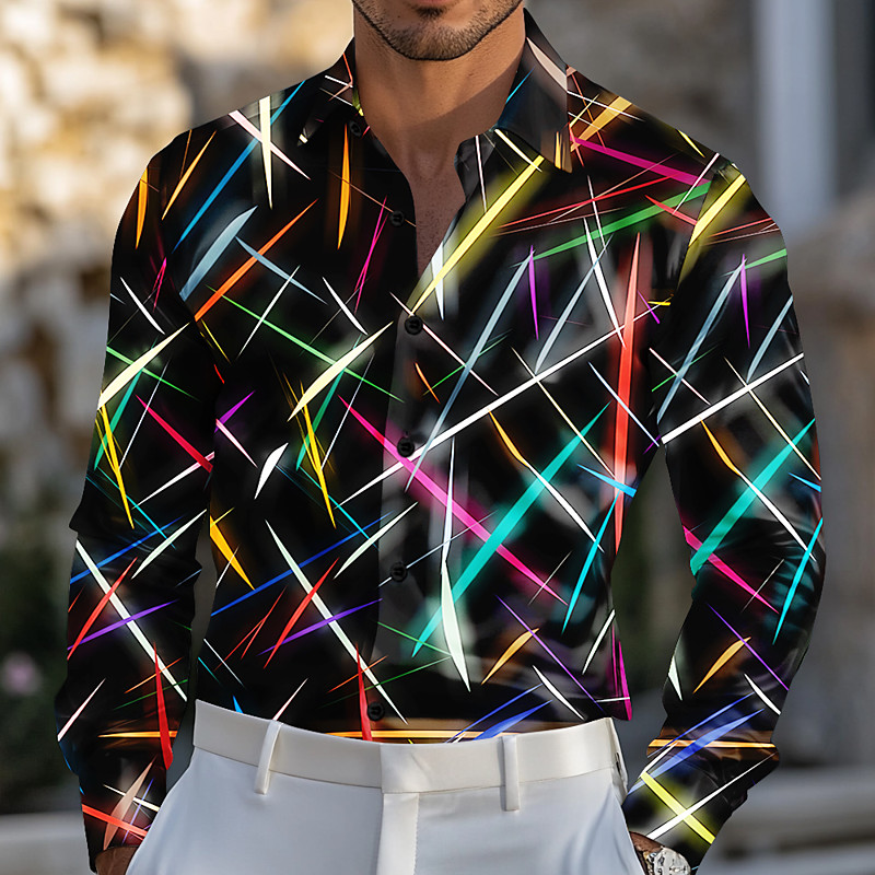 Men's Geometric Gradient Color Laser-line Shirt Satin Shirt Dress Shirt Long Sleeve Fashion Casual Vacation Dailywear Summer Spring Fall Turndown 3D Print Button Up Shirts Black / Blue Black / Orange