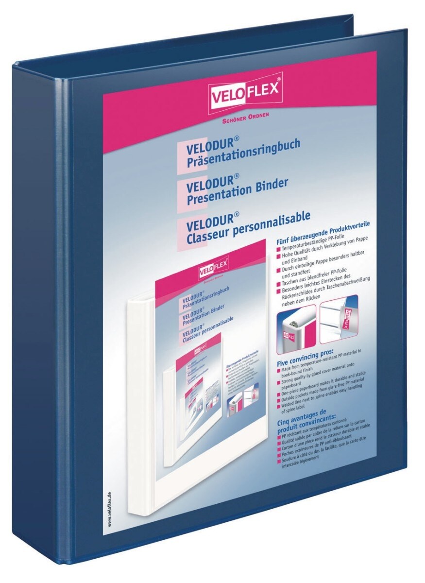 Veloflex Präsentationsringordner Velodur A4 PP kaschiert 2-D-Ring-Mechanik 30mm blau Packung mit 10 Stück