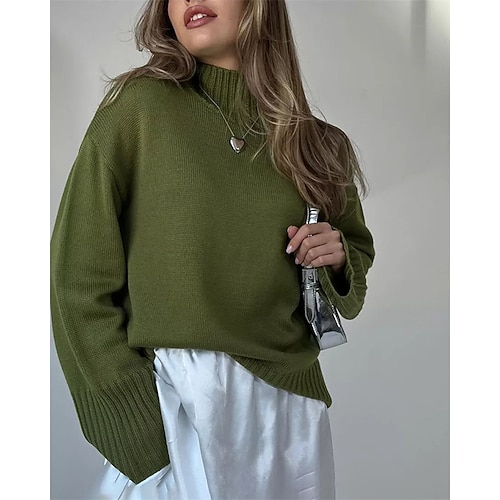 Per donna Felpa Maglione Elegante Vintage Moda Tinta unica Dolcevita Lavorato a maglia Manica Lunga Top Regolari Maglia All'aperto Quotidiano Ferie Nero Rosa Autunno Inverno