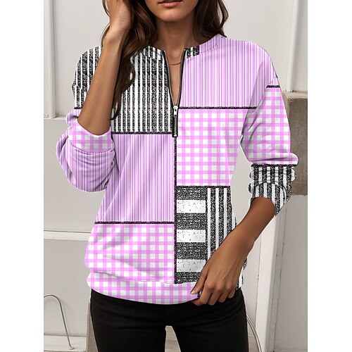 Per donna Felpe con cerniera Grafico Geometrico Moda Casual Manica Lunga Girocollo Top Regolari Streetwear Abbigliamento Quotidiano Cerniera Stampato Blu Rosa Viola Verde Primavera Autunno
