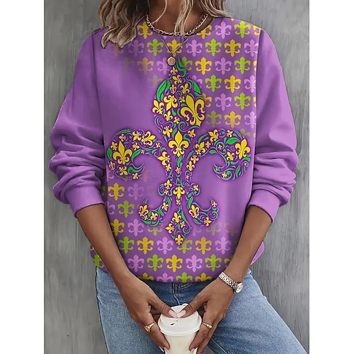 Per donna Felpa Pullover Felpe con cappuccio Grafico Geometrico Moda Casual Manica Lunga Girocollo Top Regolari Streetwear Abbigliamento Quotidiano Stampato Viola Verde Primavera Autunno Inverno