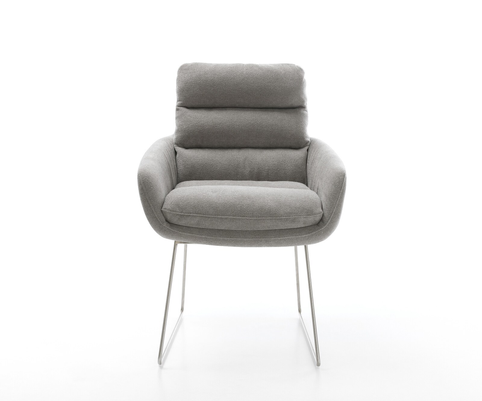 DELIFE Eetkamerstoel Abelia-Flex met armleuning zachte stof met structuur grijs slipframe roestvrij staal