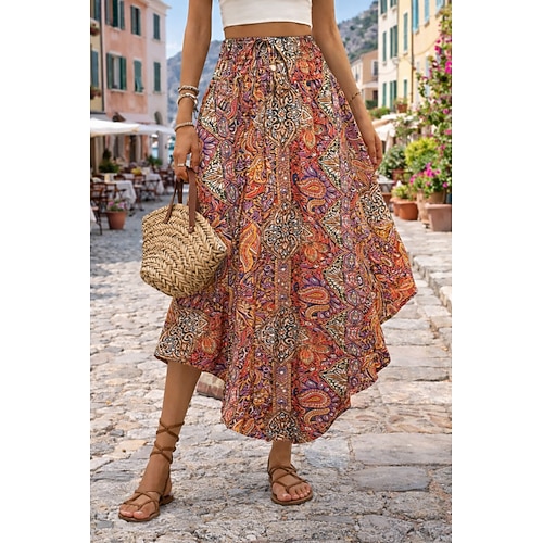 Per donna Gonna da vacanza Elegante Bohemien Moda Casual Midi Vita media Gonne Grafico Paisley Coulisse Elastico in vita Orlo irregolare Inelastico Quotidiano Vacanza Blu Nero Bianco Giallo Estate