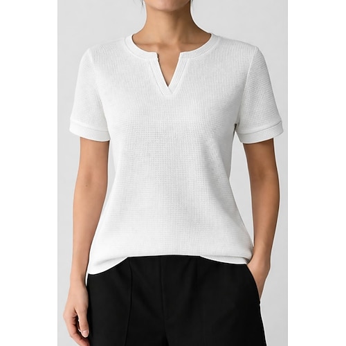 Per donna Maglietta Waffle Maglietta Tinta unica Elegante Moda Casual Manica Corta Scollo a V Top Regolari Quotidiano Uscire Abbigliamento da vacanza Bianco Estate Primavera