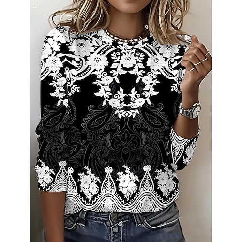 Per donna Tunica Grafico Semplice Elegante Vintage Moda Manica Lunga Girocollo Top lunghi Quotidiano Weekend Stampato Nero Bianco Vino Estate Primavera Autunno Inverno