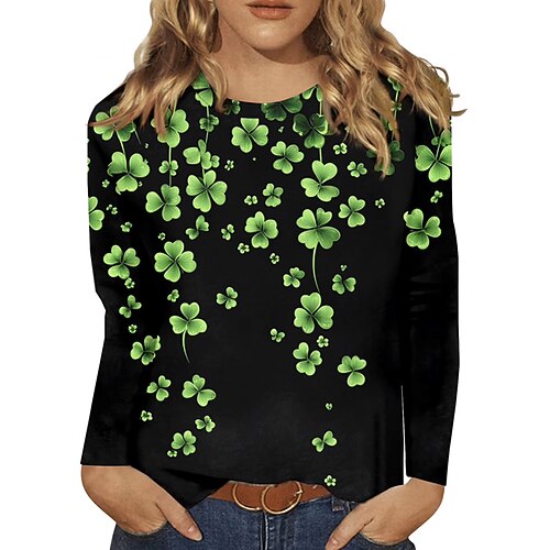 Festa di San Patrizio Per donna Maglietta Grafico Trifoglio Moda Casual Manica Lunga Girocollo Top Regolari Quotidiano Weekend Stampato Nero Bianco Estate Primavera Autunno