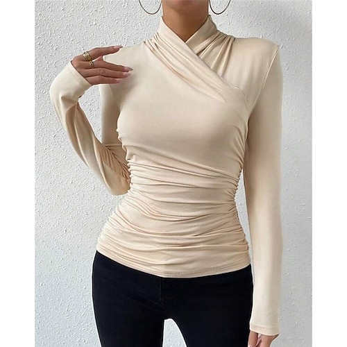 Per donna Blusa Semplice Elegante Sexy Casual Manica Lunga Camici Top Regolari Quotidiano Ferie Uscire Arricciato Nero Albicocca Primavera Autunno Inverno
