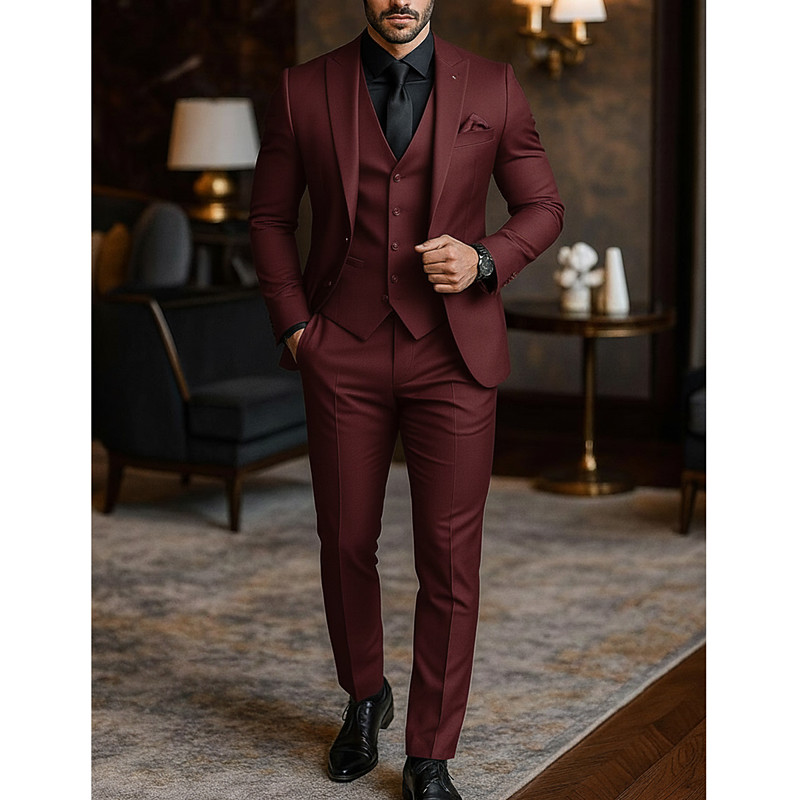 Men's Wedding Business Suits Notch Lapel Burgundy Navy Blue Fashion Formal Solid Colored Standard Fit 3 Piece Single Breasted Two-buttons