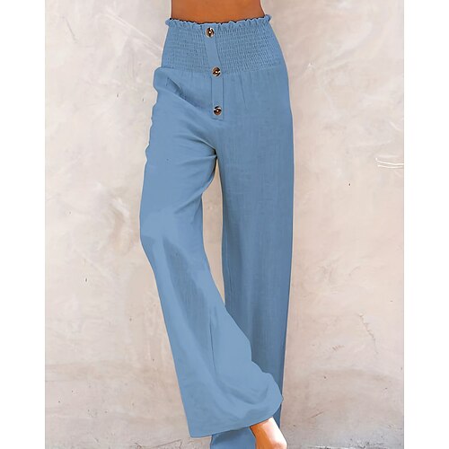 Per donna Culotte Gamba Larga Pantaloni Eleganti Casual Lunghezza intera Naturale Semplice Elastico in vita All'aperto Confortevole Streetwear Uscire Nero Beige Estate Vestibilità regolare