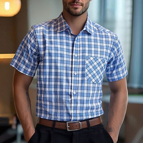Per uomo Camicia Camicia elegante Camicia con Bottoni Plaid Matrimonio Quotidiano Rosso Blu Verde Manica Corta Collo ripiegato Estate Primavera Abbigliamento Tasca Frontale