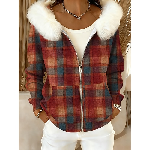 Per donna Felpe con cappuccio Grafico Plaid Casual Manica Lunga Con Cappuccio Top Regolari Abbigliamento Quotidiano Casuale Sportivo Blu Viola Marrone Verde Autunno Inverno