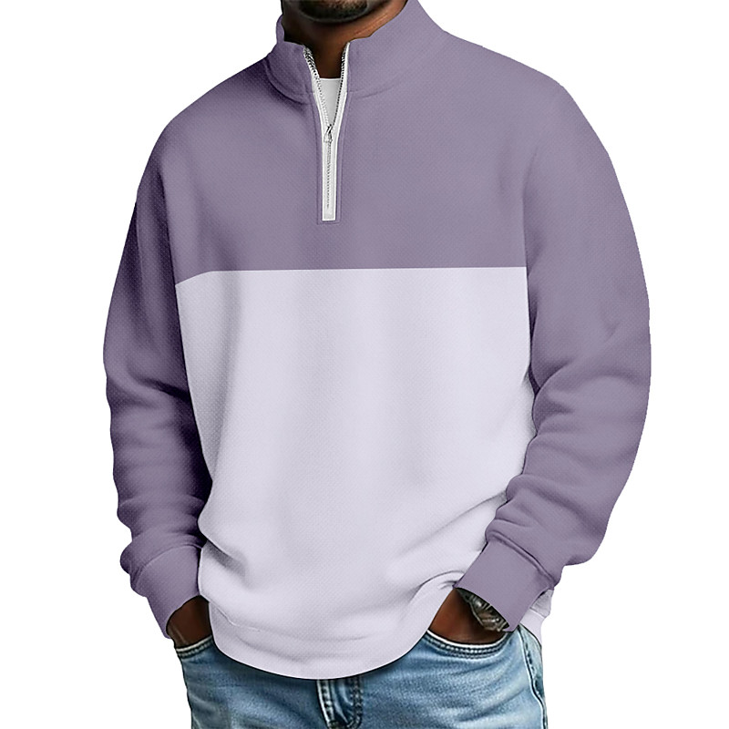 Men's Color Block Zip Polo Shirts Long Sleeve Polo Shirts Grandad Collar Casual School Athleisure Holiday Daily Wear 3D Print Quarter Zip Polo Spring Fall Blue Navy Blue Purple