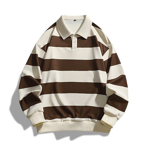 Per uomo Polo Polo da Rugby Streetwear Casuale Bavero Manica Lunga Essenziale Moderno Strisce orizzontali Bottoni Primavera Autunno Vestibilità regolare Caffè Blu marino Verde Polo
