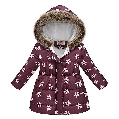 Da ragazza 3D Floreale Pop art Cappotto Soprabiti Piume Manica lunga Autunno Inverno Streetwear Essenziale Bambino 4-12 anni Da mare Sport Giornaliero Standard