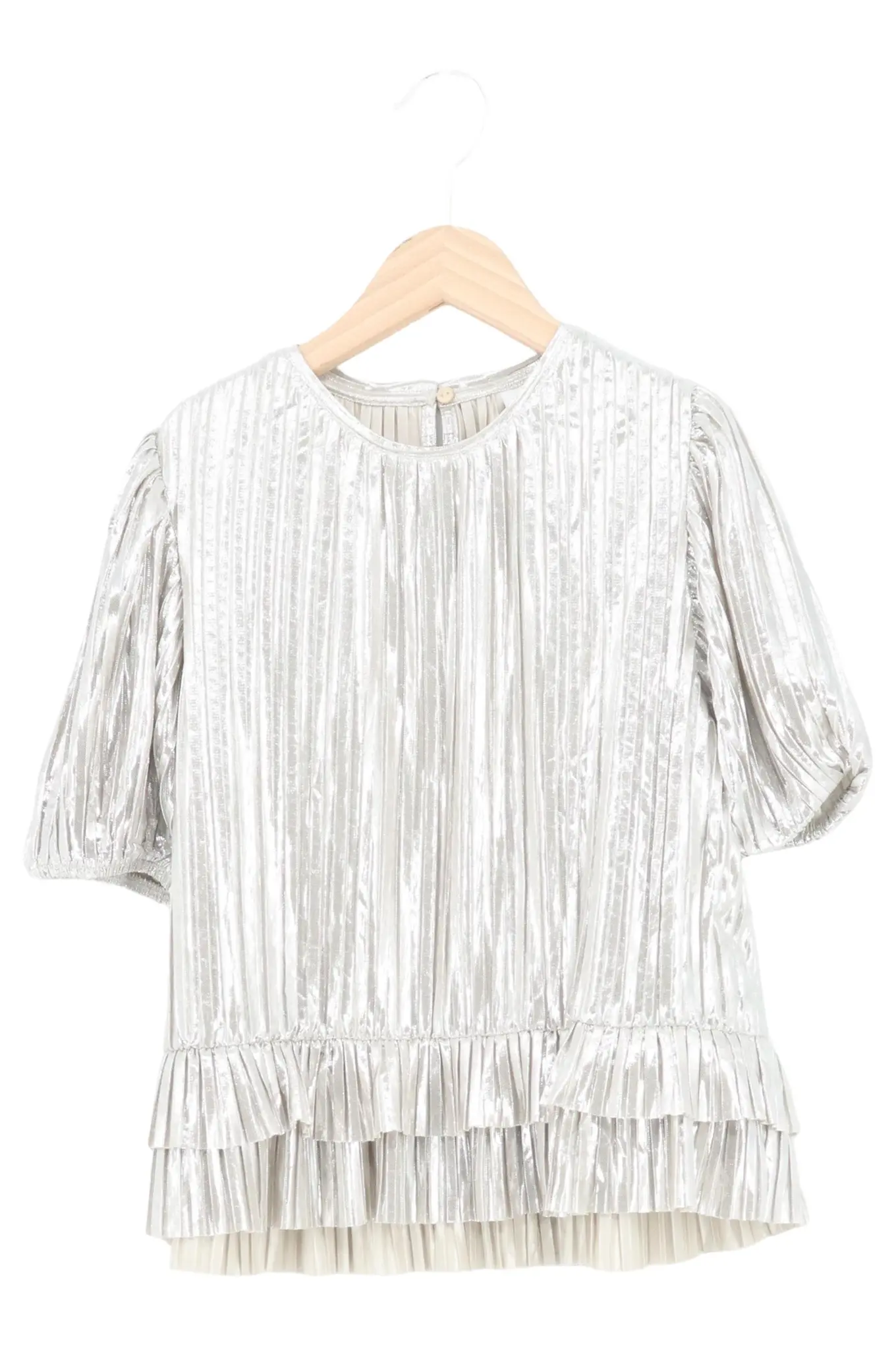 ZARA Kinder Bluse Gr. 134 Silber Rüschen Freizeit Chic