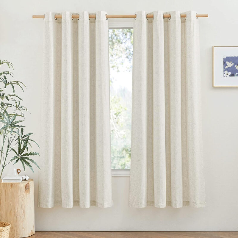PONY DANCE Semi Sheer Linen Curtains with Eyelet, 2 Panels W140 x L160 cm(W55 x L63 inch), Beige
