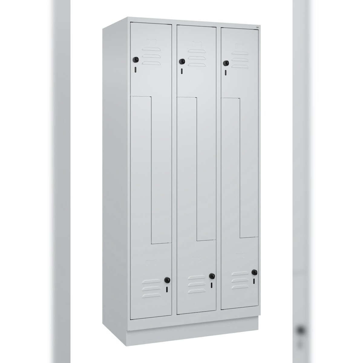 C+P Z-Spind Classic PLUS, Sockel, 6 Abteile, HxBxT 195x90x50cm, Sicherheitsdrehriegel, Hellgrau/Hellgrau von PROREGAL