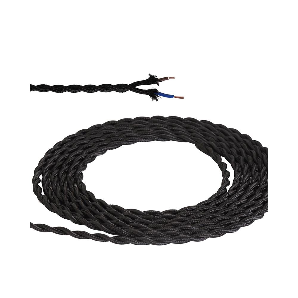 Glorelle 1m Black Braided Twisted 2 Core 0.75mm Cable Luxuria