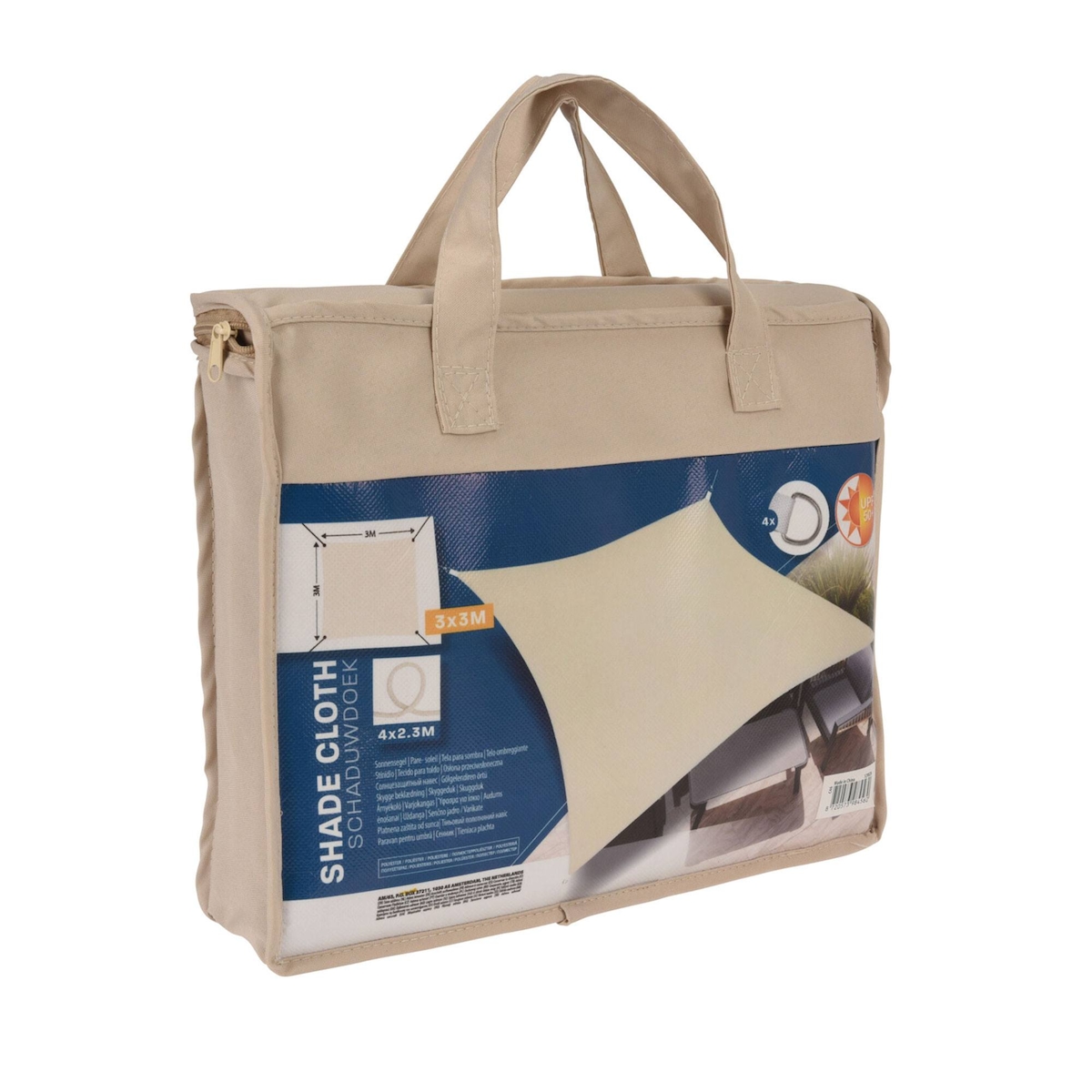 WellHome - Quadratische Markise für Sonnenschutz aus 3 m Polyester LSF 50+ in Creme