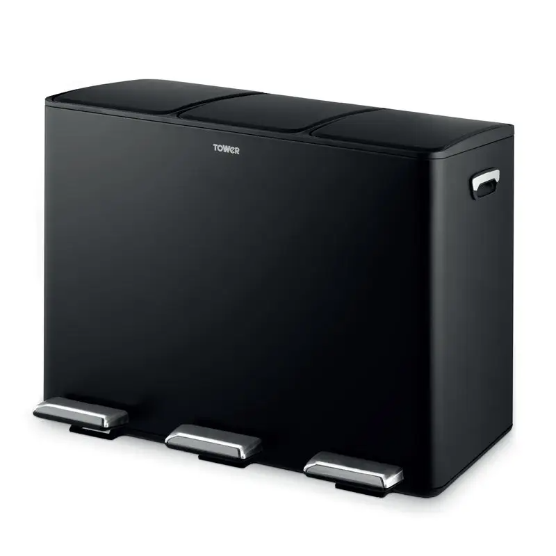 TOWER Recycling Pedal Pin with three Compartments 45L, Black