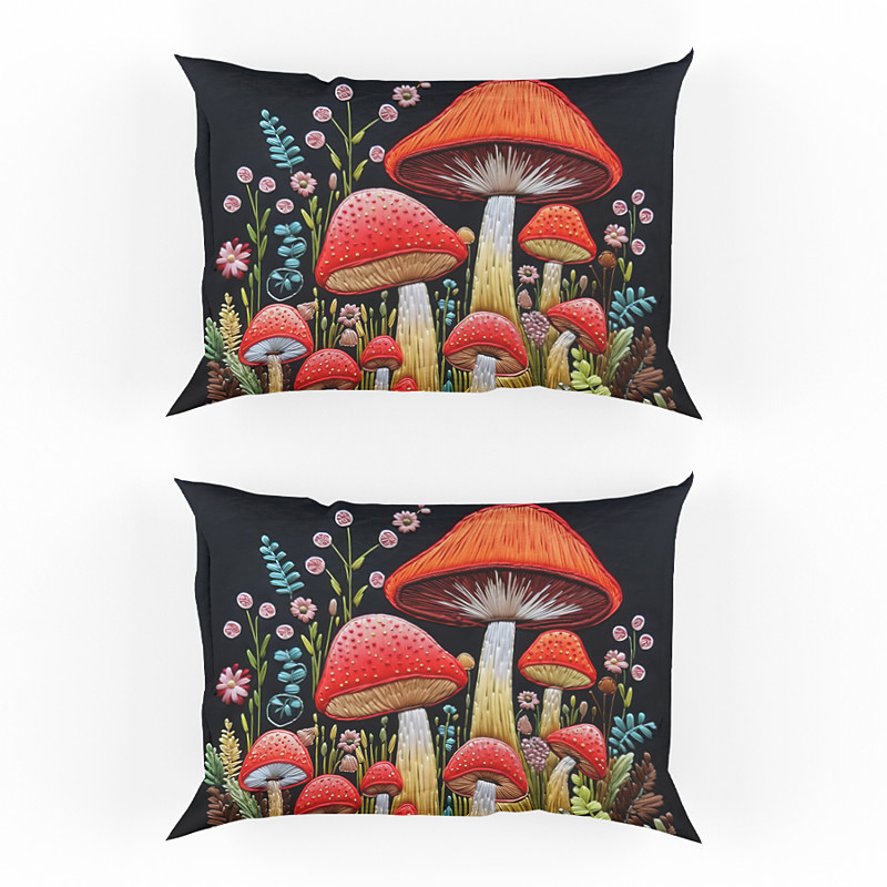 Pillowcases Set of 2 Queen Size Mushroom Pattern Duvet Cover Set Printed Pillow Cases Soft Breathable Cooling Pillowcase Decorative Pillow Cover (20x30 Inches)