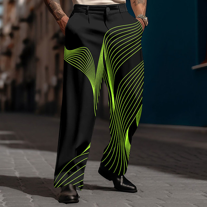 Men's Geometric Gradient Waves Dress Pants Trousers Suit Pants Mid Waist Casual Dailywear Holiday Relaxed Fit Flat Front Dress Pants with Side Pockets Spring Fall 3D Print Black And White Black