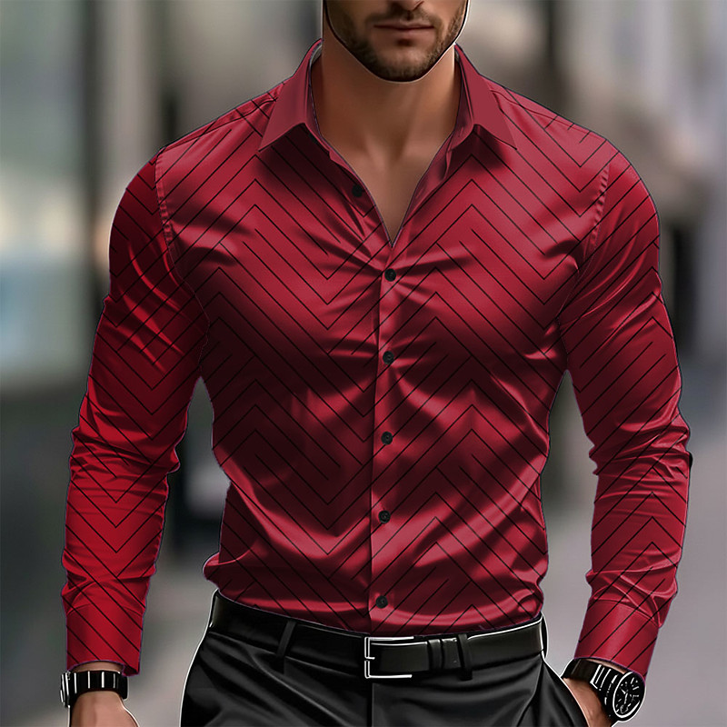 Men's Geometric Pattern Abstract Art Shirt Satin Shirt Dress Shirt Long Sleeve Business Casual Vacation Dailywear Summer Spring Fall Turndown 3D Print Button Up Shirts Blue Black White Red Rose Red